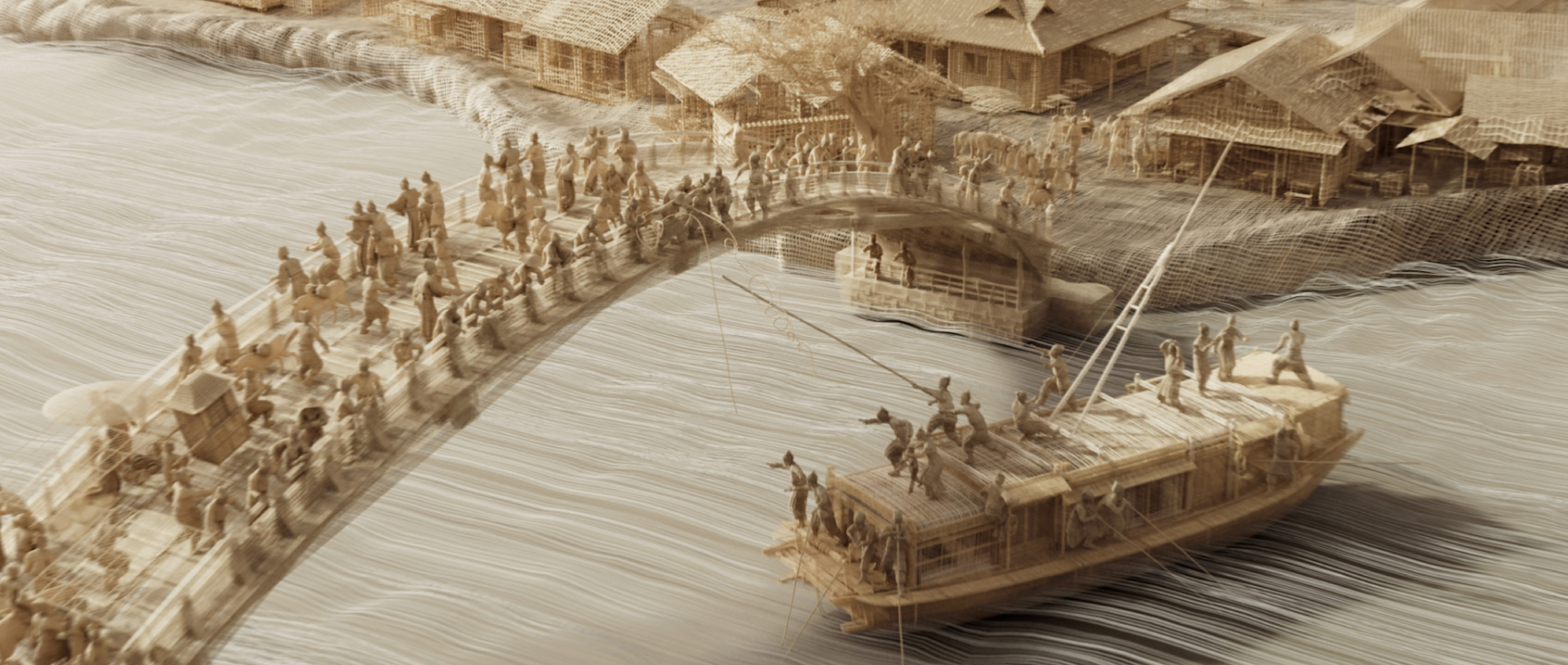创意来源与古画《清明上河图》的材质-绢本